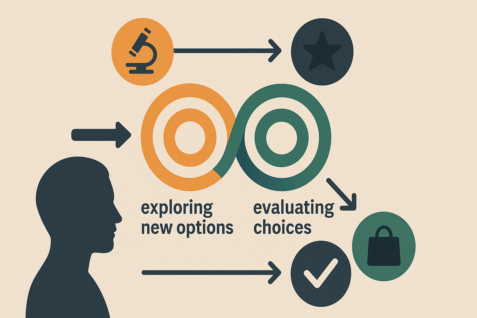 After a purchase trigger (a need, a desire, a recommendation), your shopper doesn’t march forward. They loop between two states: